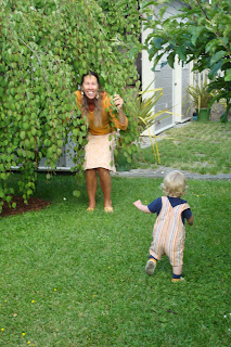 So incredible! E's tree is just LOADED with sweet, dark red cherries just waiting to be eaten! The tree is about 30 yrs old and one of the biggest cherry trees I have ever seen!